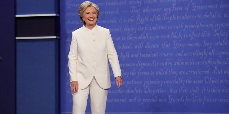 Hillary Clinton Takes on the Third Debate in an Epic White Pantsuit